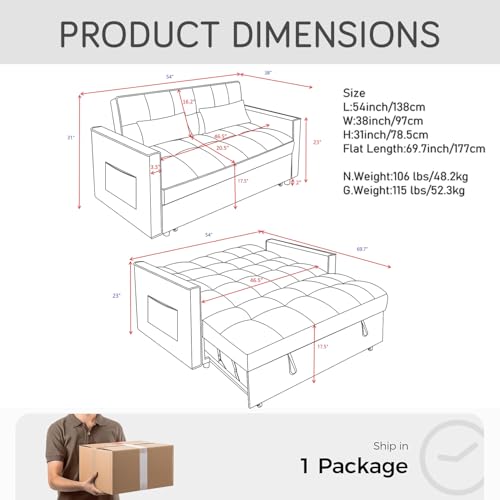 ใ€๐‚๐จ๐ง๐ฏ๐ž๐ซ๐ญ๐ข๐›๐ฅ๐ž ๐’๐จ๐Ÿ๐š ๐๐ž๐ใ€‘: Effortlessly transform your futon sofa bed into a guest full size bed with the simple pull out sofa mechanism. No tools required, making it easy to switch between seating and sleeping arrangements.
