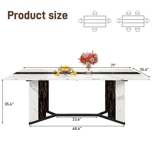 Modern Aesthetic with Dual-Tone Finish: Stylish two-tone color scheme eliminates the need for table runners, offering a contemporary upgrade to any dining space.Expansive 6-7 person capacity with a footprint-saving design; dual-tone color block styling replaces bulky table runners for a sleek look.