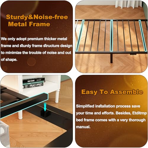 【Spacious Under-Bed Storage】This metal bed frame gives you 12.6 inches of clearance underneath, turning wasted space into practical storage. It’s perfect for stashing away your stuff, which helps you stay organized and makes the whole room look tidier. The generous height also makes it easy to sweep or vacuum underneath