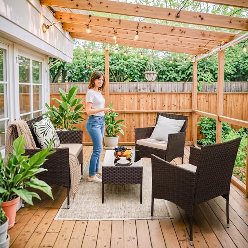 Utilize Your Outdoor Area: Homall 4 pieces patio furniture sets can easily meet your needs to conduct a conversation in your porch, balcony or other outdoor space. Bathing the sunshine or having a rest after working, it can also enriches your leisure time with your family and friends.