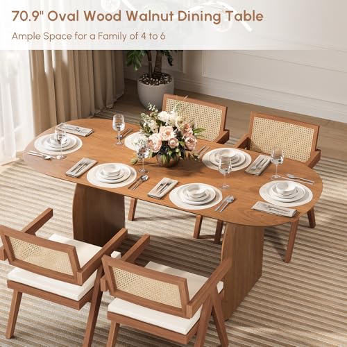 homary 70.9″ Japandi Oval Dining Table for 6, Modern Pine Wood Dininer Table for Dining Room, Kitchen, Living Room Mesas de Comedor, Easy Clean, Without Dining Chair